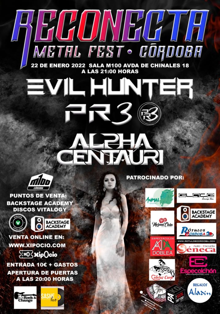 Será acompañada por las dos bandas emergentes más punteras de la escena Cordobesa: PR3 y ALPHA CENTAURI, ambas bandas presentarán sus discos debut sacados en 2020 y 2021 respectivamente.